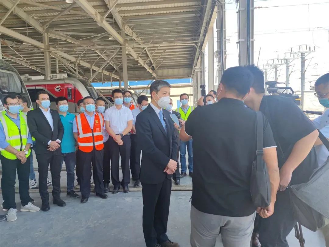 结束后,廖力强大使专程到斋月十日城电气化轻轨项目部走访并慰问中方施工人员,现场接受了新华社、中央广播电视总台、凤凰卫视等媒体采访。廖大使表示,斋月十日城电气化轻轨项目是两国“一带一路”合作标志性项目之一,也是两国全面战略伙伴关系发展取得的重要成果,对在新时期巩固和发展两国友好合作关系意义重大。项目采用中国技术和装备,由两国企业共同实施,是中国轨道交通全产业链走进埃及的第一个重大项目,具有技术标准高、设备比重高、附加值高的特点。该项目不仅使中国设计、中国方案、中国设备、中国工艺在埃及市场创立了良好口碑,也将在中东和非洲地区市场产生良好的品牌示范效应。