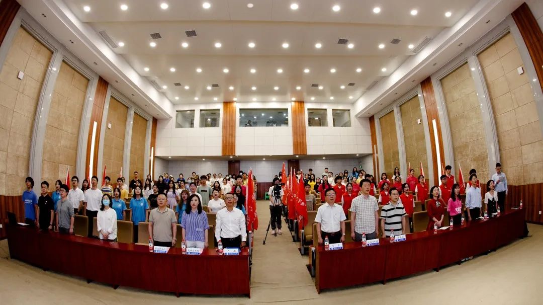 卢波、李彦向2022暑期社会实践团队代表授旗,标志我校2022暑期社会实践活动正式启动。