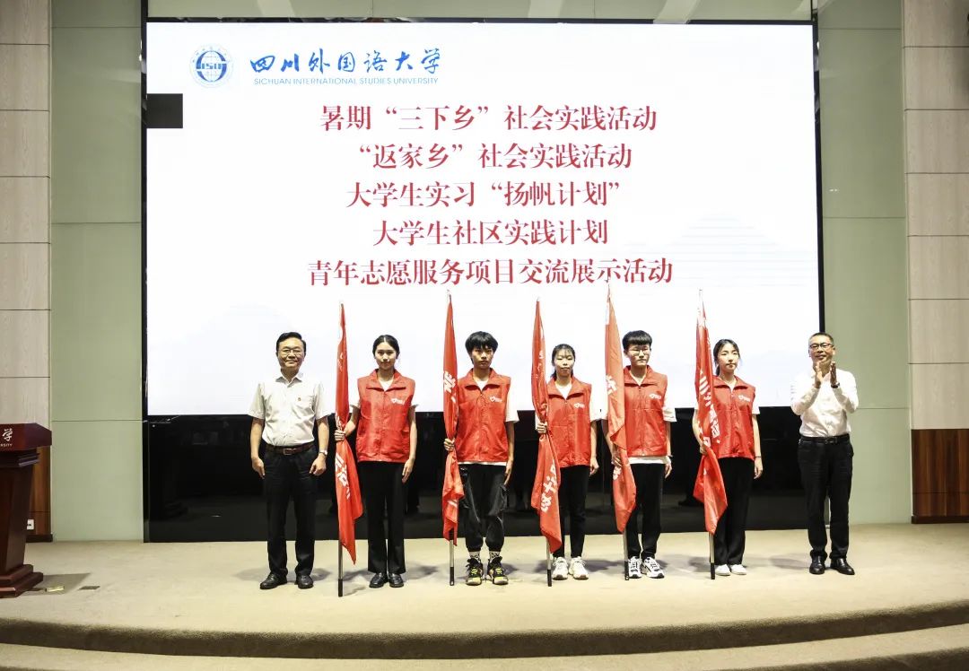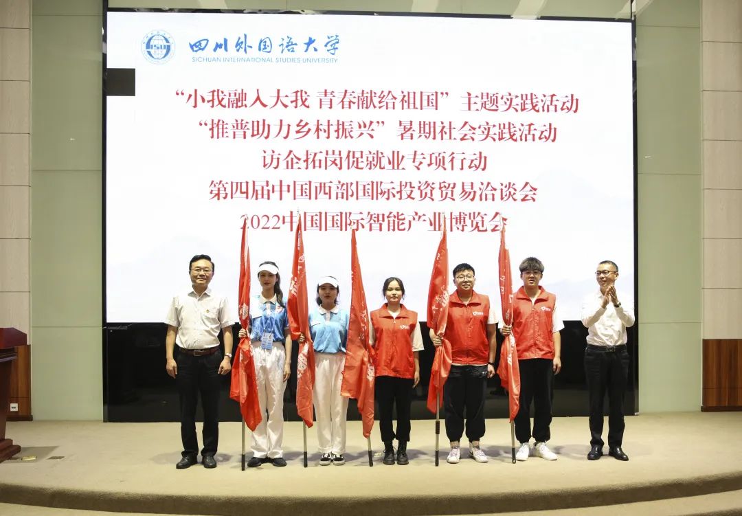 6月30日下午,四川外国语大学2022暑期社会实践活动启动仪式暨第八届研究生支教团出征仪式在东区宏文楼国际报告厅举行。校领导卢波、李彦,相关职能部门负责人,二级学院党总支、团总支书记代表,暑期社会实践团队师生代表和第八届研究生支教团全体成员参加活动。