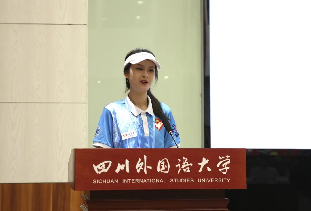 “三下乡”社会实践活动带队教师代表、中国语言文化学院团总支书记陈茁表示,同学们要抓住暑期社会实践大好机遇,加深对国情的认识,在实践的舞台上开阔视野、奋发有为,谱写激情燃烧的青春乐章。智博会志愿者代表刘美辰表示,一定会以最饱满的热情、最昂扬的干劲,担起川外多语言青年志愿者的责任,展现新时代川外多语言青年志愿者扎实的专业素养和良好的精神风貌。第八届研究生支教团队长胡皓天表示,一定会秉承“海纳百川,学贯中外”的校训,不忘支教初心,牢记育人使命,在祖国最需要的地方续写属于川外青年的青春华章!