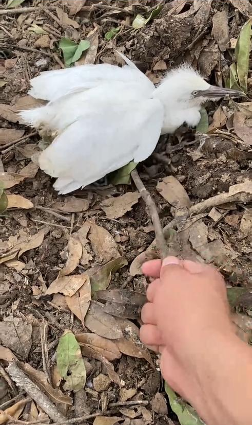 视频显示,一只奄奄一息的鹭鸟躺在地上,有人用一根树枝拨着鹭鸟的腹部,并说着“来,站起来,快飞。”但鹭鸟没有反应,无法飞翔。视频发布后,引发网友关注。
