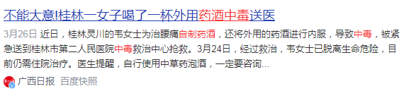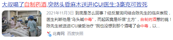 现实生活中,不少自制药酒者对于中药了解不深,听信偏方,炮制药酒,导致饮用之后中毒。