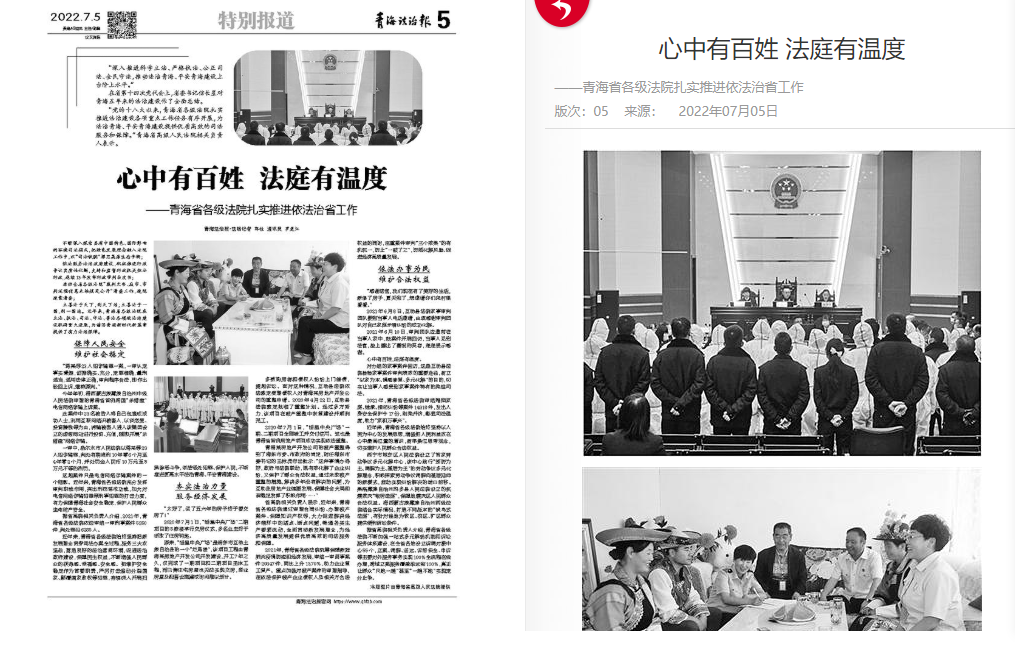 “党的十八大以来,青海省各级法院扎实推进法治建设各项重点工作任务有序开展,为法治青海、平安青海建设提供优质高效的司法服务和保障。”青海省高级人民法院相关负责人表示。