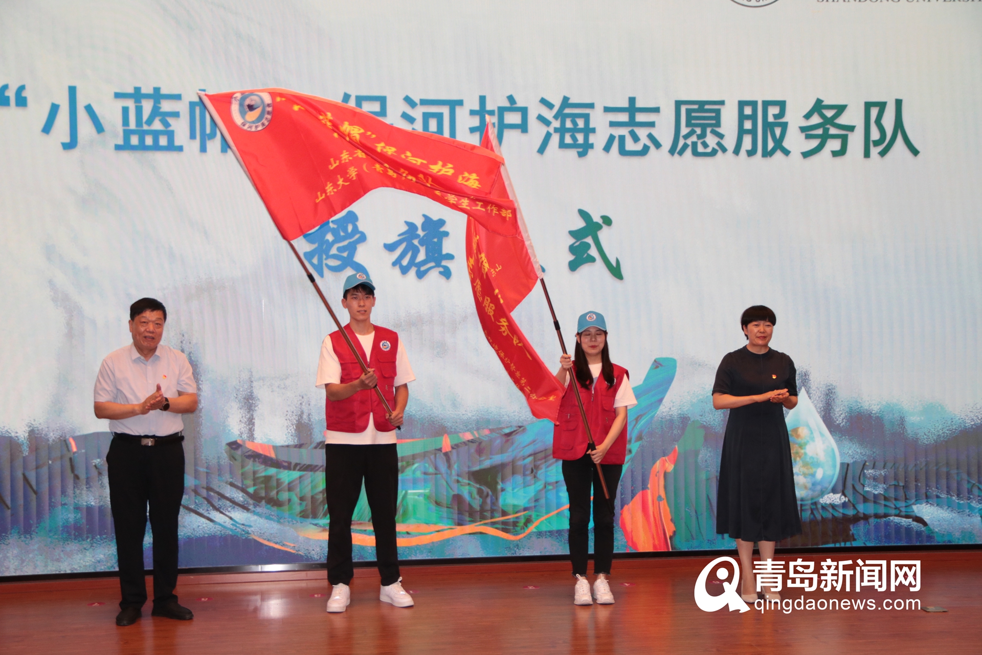 7月5日下午,山东省生态环境厅联合山东大学(青岛)开展的“小蓝帽”保河护海志愿服务活动启动仪式在山东大学(青岛)校区举行,“小蓝帽”保河护海志愿服务队正式成立。