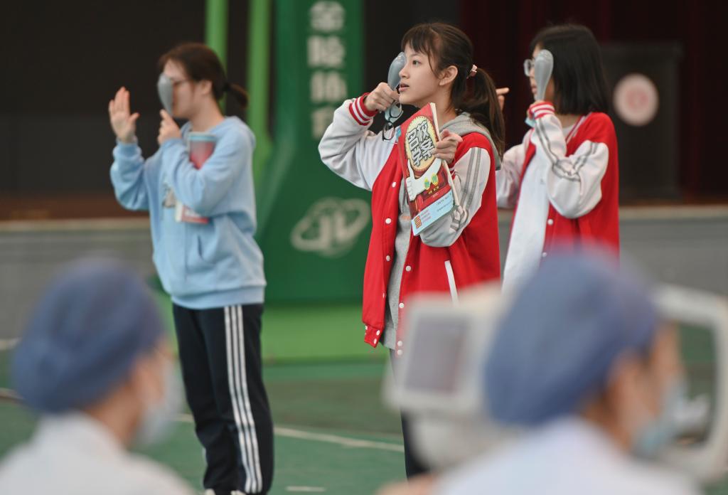 2021年4月28日,在福州第二中学,学生在视力筛查中辨识视力表。新华社记者 宋为伟 摄