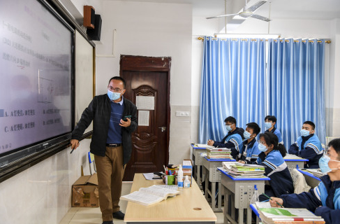 老师在给高三学生上课 图片来源:新华社记者 曹祎铭 摄