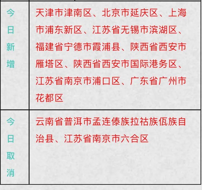 7月5日,重庆市疾控中心发布消息称,今日新增重点排查地区包括天津市津南区、北京市延庆区、上海市浦东新区、江苏省无锡市滨湖区、福建省宁德市霞浦县、陕西省西安市雁塔区、陕西省西安市国际港务区、江苏省南京市浦口区、广东省广州市花都区。