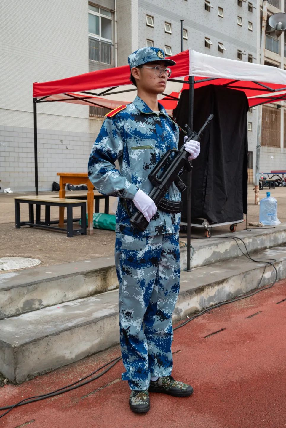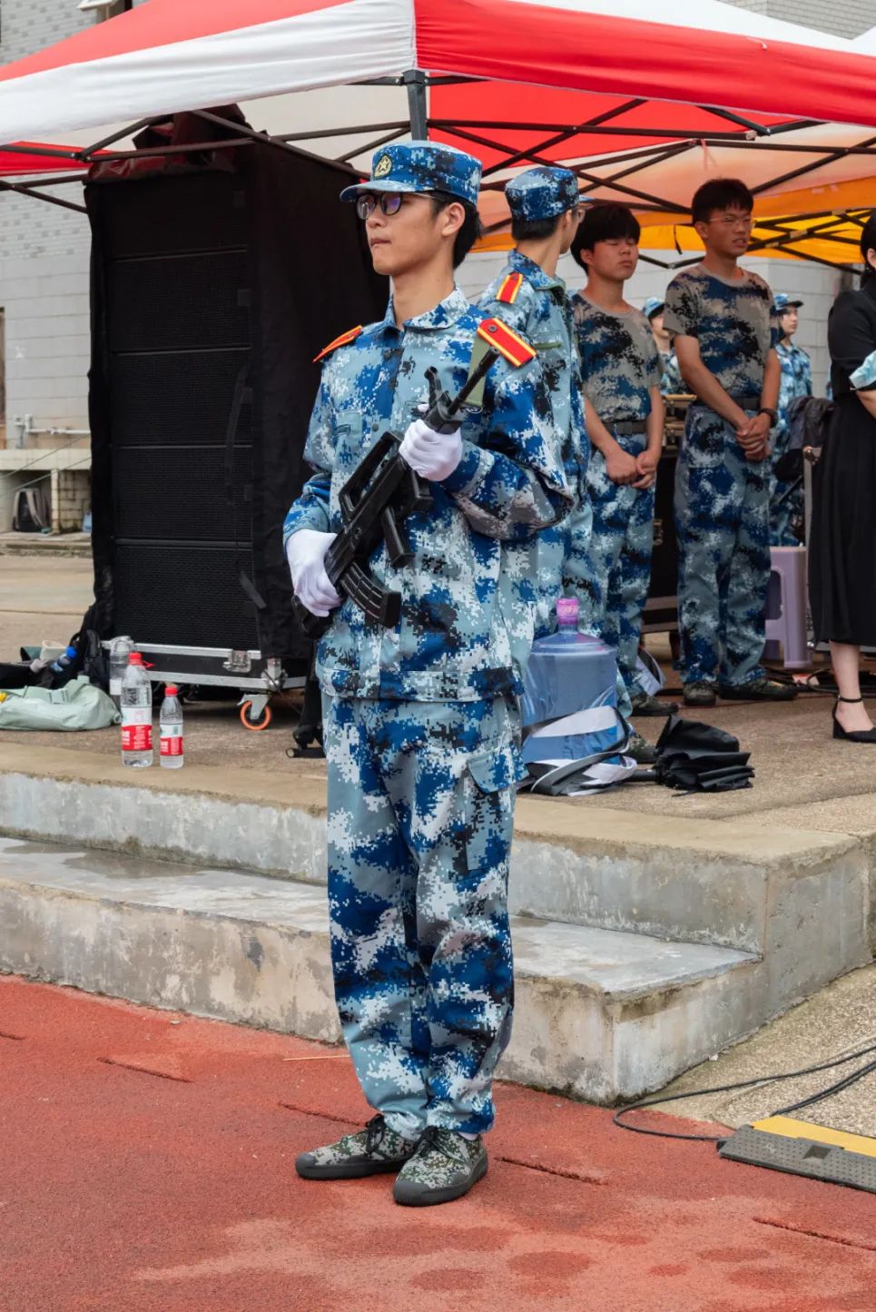 军训期间印象最深的有两件事,一个是学院给我们发了瓜瓜和雪糕,让许多其他院的学生羡慕不已;另一个就是军训彩排的下午,当我们方阵汇演时,就开始下暴雨,但我们还是坚持到彩排完成,汇演完成雨就停了,八连六排必须全员加鸡腿!