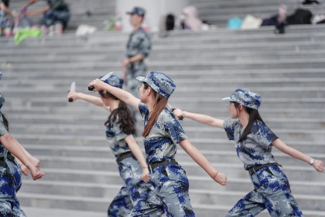 于是教官乐了,喊隔壁教官来看。过了一会,又要集合了,女孩子们特别提醒隔壁连队,千万别破坏阵法。