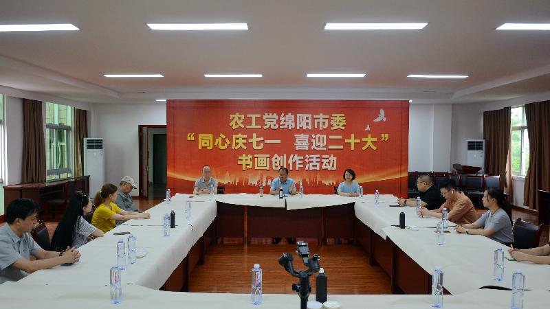 2022年7月1日,为庆祝中国共产党成立101周年,喜迎中共二十大,农工党绵阳市委组织前进书画院党员艺术家开展“同心庆七一 喜迎二十大”书画创作活动。农工党绵阳市委主委、市政协副主席赵朝晖,市委会老领导沈其霖,秘书长肖敏等出席活动。