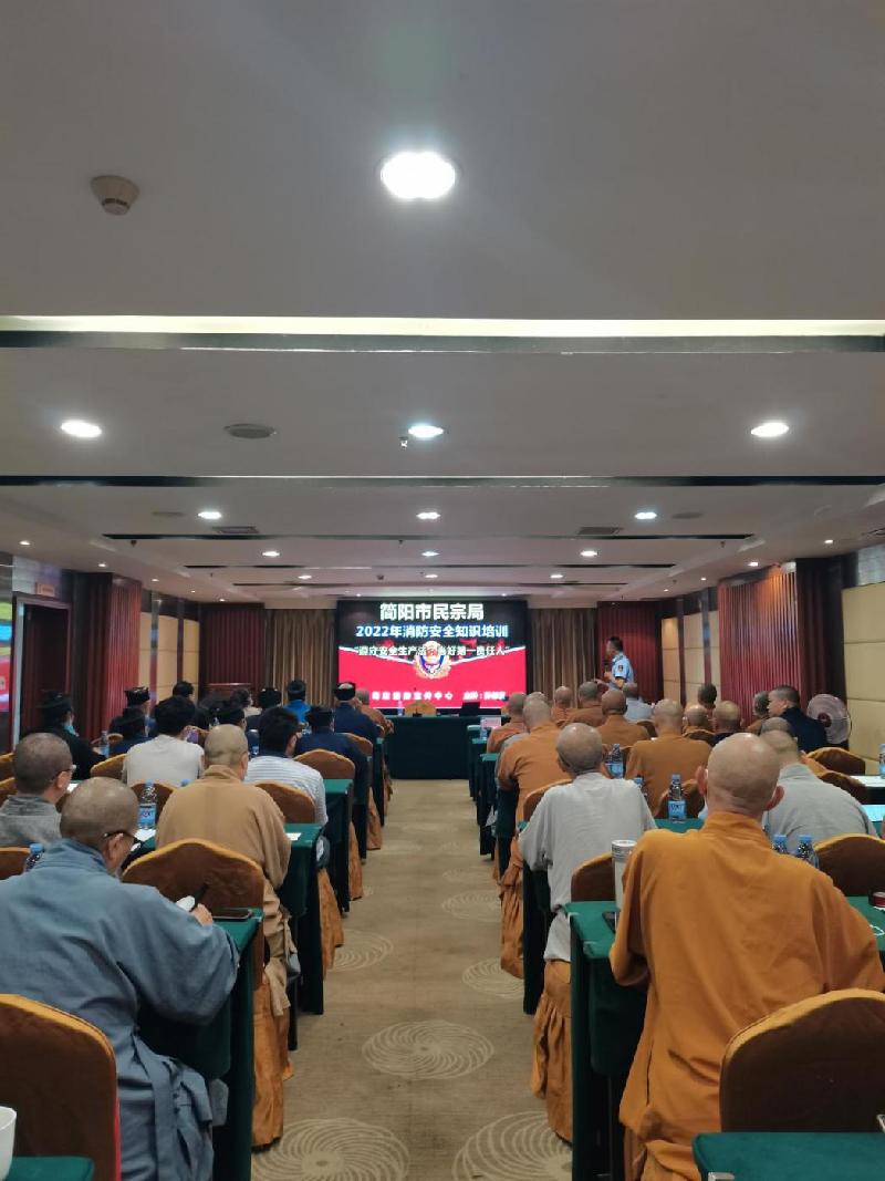 为进一步加强宗教活动场所消防安全管理工作,推进场所消防安全规范化管理,提高教职人员防火灭火和逃生自救能力,7月4日下午,简阳市民宗局在昕雅图酒店举办了宗教活动场所消防安全知识培训并在弥陀寺进行消防演练。全市宗教活动场所负责人、教职人员60余人参加了培训。