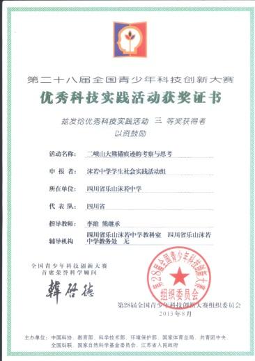 盟员彭先云、熊继承带领的考察小组对峨眉姊妹山的考察所取得的成果既为盟员的参政议政提供了保障,同时又是他们教育、教学、教研工作的重要组成部分,又是沫若中学“教师指导下的学生社会实践活动”的重要内容。他们的考察活动和考察成果作为学校的教育科研项目和学生社会实践项目,有多项成果曾经获得国家级、省级和市级的奖励和获奖证书。