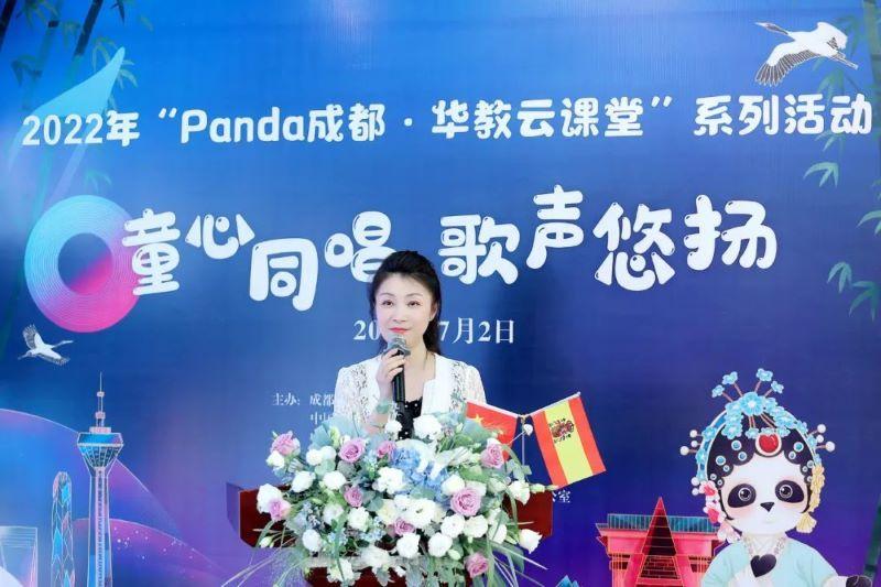 为更好传播中华文化,扩大海外华文教育的影响力,7月2日,由成都市人民政府侨务办公室、中国驻西班牙大使馆、中国驻巴塞罗那总领馆主办,成都海外联谊会、成都市锦江区人民政府侨务和台湾事务办公室、成都市锦江区教育局承办,成都市盐道街小学卓锦分校、西班牙马德里哆来咪文化学校、西班牙华文教育中心学校协办的2022年“Panda成都·华教云课堂”系列活动——童心同唱歌声悠扬在成都举行。