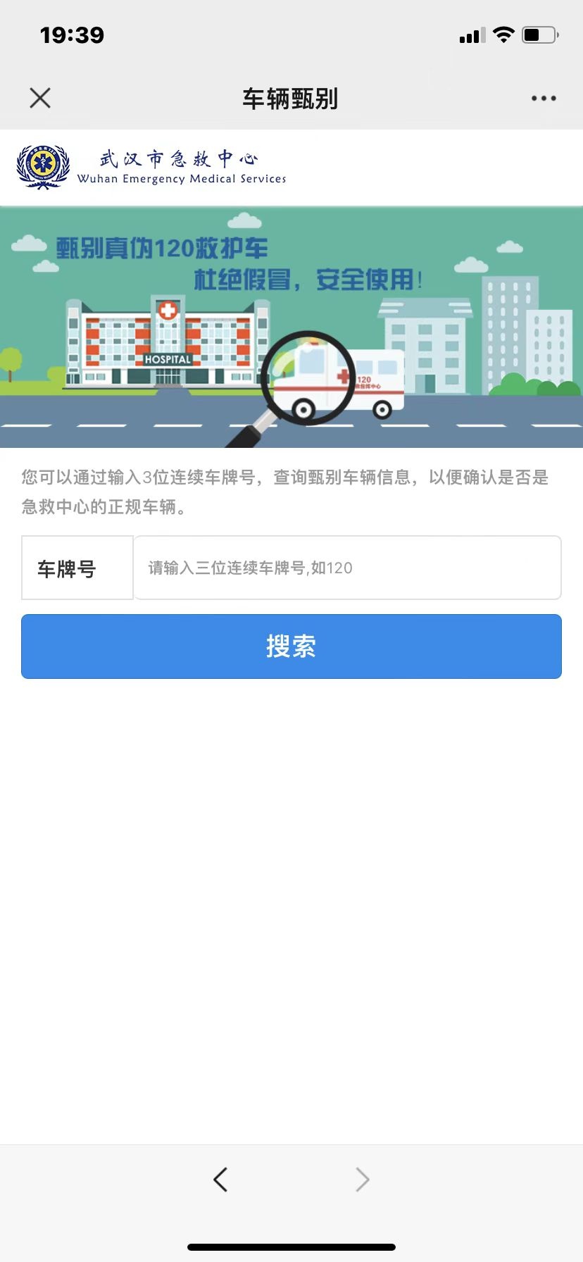武汉市急救中心提醒市民,关注该中心公众号后,可通过输入车牌号的方式甄别真假救护车。