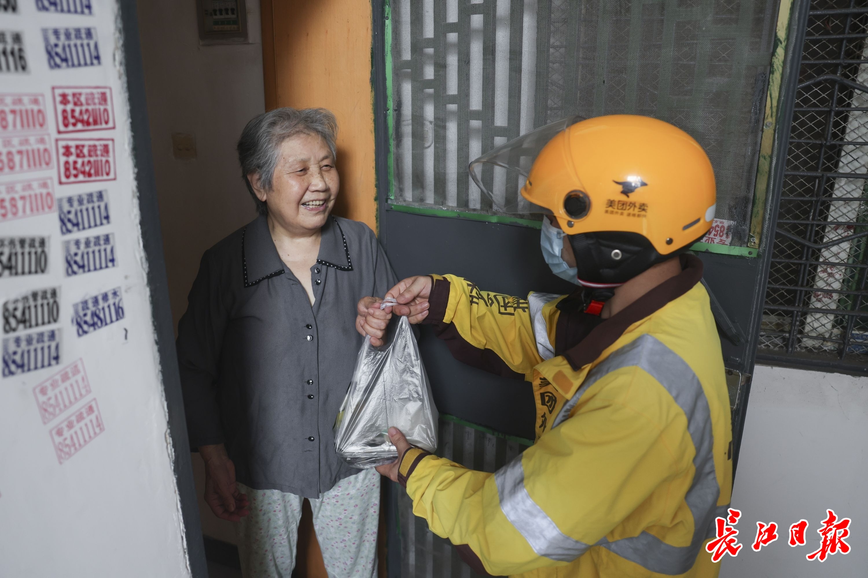 70岁的陶小华是一名残疾人,独居在荣东社区。5日中午,他从快递小哥刘奇贝手中接过两份冒热气的盒饭,连声道谢:“谢谢你们还专门挑软和的饭菜给我,我再也不用吃方便面了。”