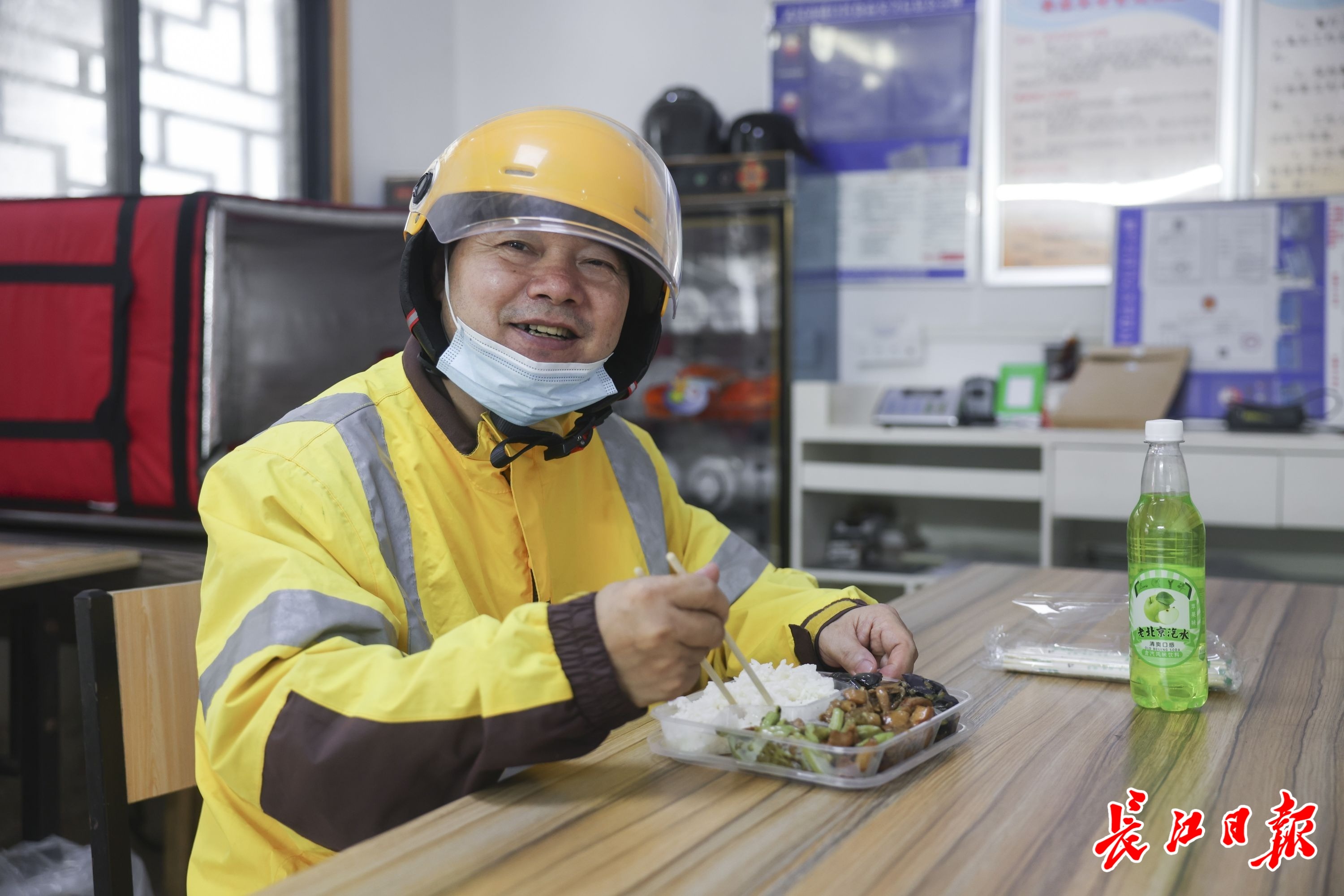与方文钢一样,顺丰快递小哥夏黎平也在这个幸福食堂就过餐。“干快递这行,吃饭没有准点,一般只能在路边找快餐店将就。现在能够在幸福食堂吃饭,既放心又实惠,给老人送餐只是举手之劳。”夏黎平告诉记者,疫情期间,他与社区工作人员共同服务荣东社区1600余户居民。去年夏天,荣东社区挂牌成立“江城蜂巢爱心驿站”,方便他们休息、饮水。为回馈社区对快递员群体的关爱,夏黎平主动当起社区的编外志愿者,送快递的同时也为下楼不便的老人送餐上门。