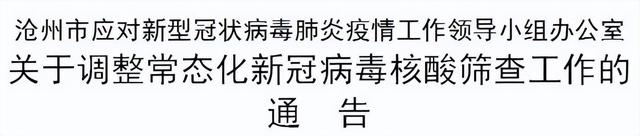 根据《新型冠状病毒肺炎防控方案(第九版)》要求和省疫情防控有关规定,结合目前我市疫情防控形势,市应对新冠肺炎疫情工作领导小组研究决定,对常态化核酸筛查工作进行调整,现就有关事宜通告如下: