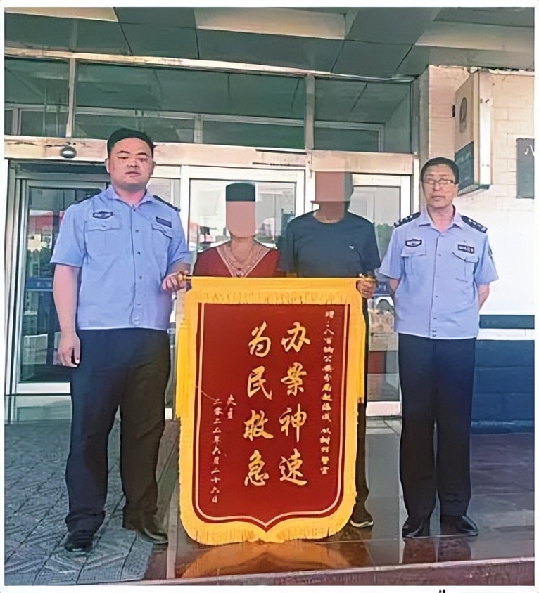 事后,老两口将一面写有“办案神速为民救急”的锦旗送到民警手中。