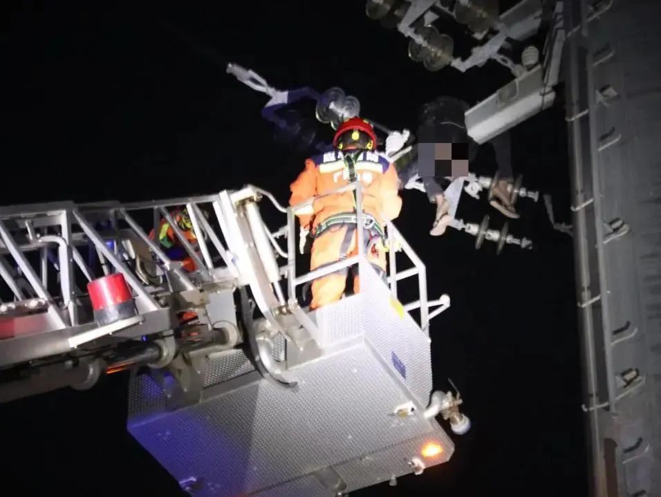 一名男子被挂在了15米的高压线杆上