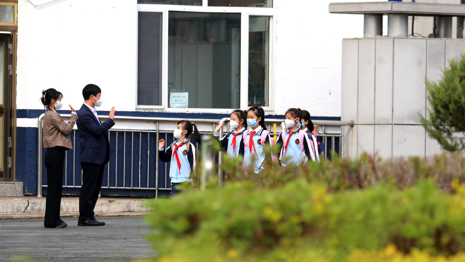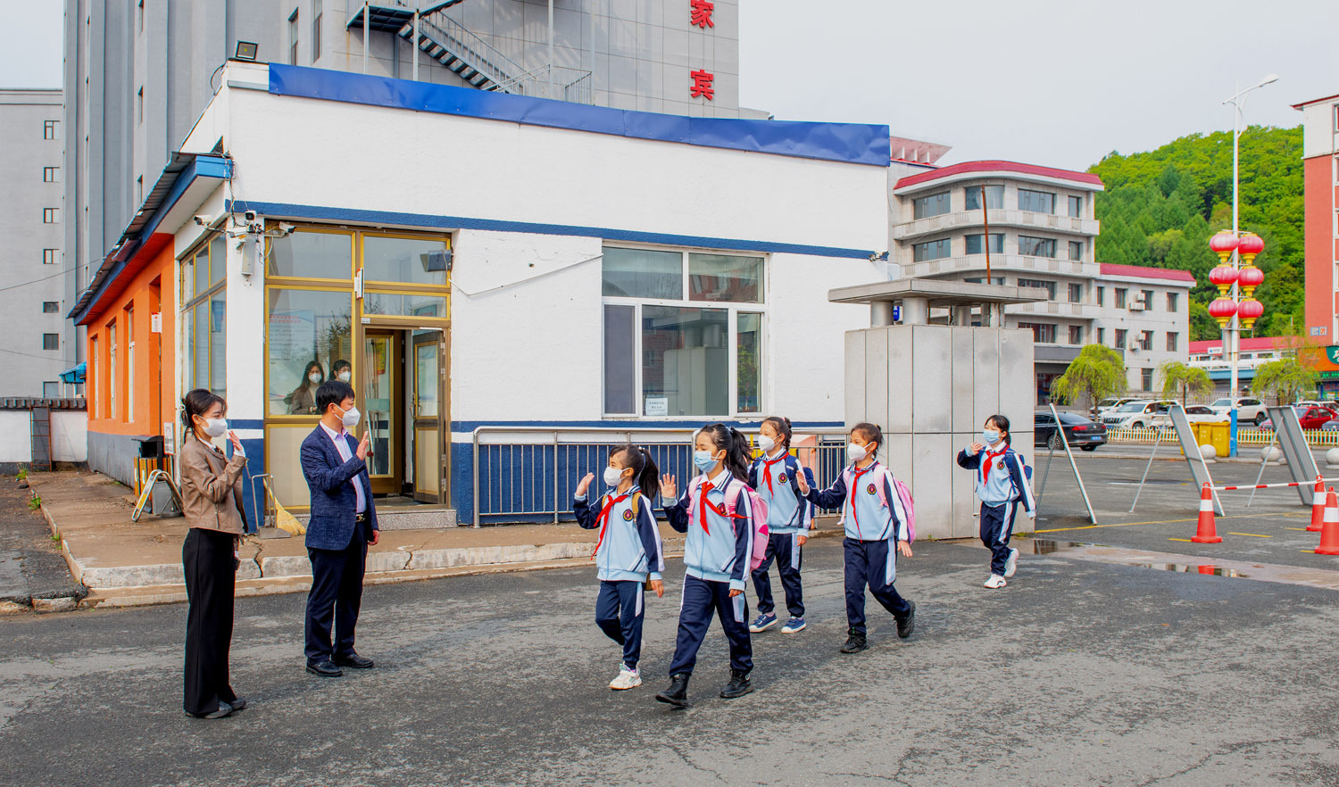 第三礼,放学路队给辛苦一天的老师进行“鞠躬礼”。