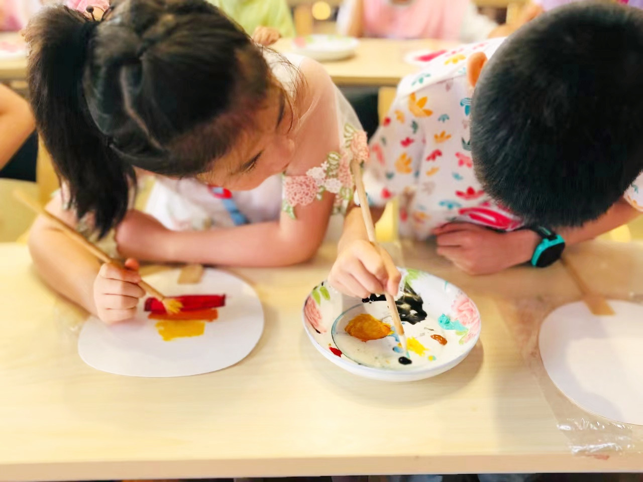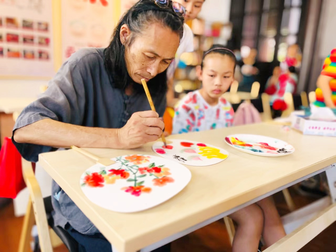 活动伊始,上城区教育学院的徐老师为前来参加活动的小朋友们讲解团扇绘画的历史渊源让小朋友们了解了中国宋韵艺术形式的丰富多彩,让团扇绘画这种中国非物质文化遗产在当代的青少年中了解与传承。