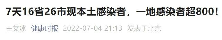 据人民日报健康客户端消息,自6月27日至7月3日一周时间内,全国16省26市发现本土感染者,新增本土感染者已超一千例,达1202例。其中安徽省一周内新增本土感染者已超800例,江苏省新增感染者也超100例。