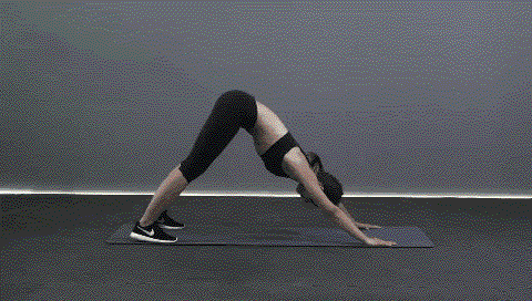 动作要点:俯身成倒V字型并缓缓向前呈俯卧撑起始姿态,腹部持续紧张,支撑时手臂保持自然伸直。
