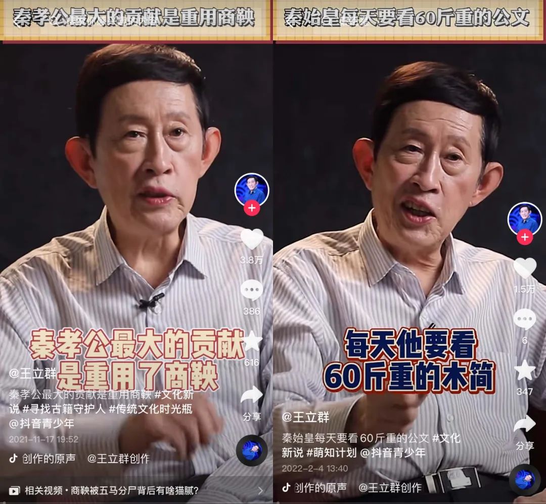 在抖音上,他讲解历史知识时,侃侃而谈,虽不苟言笑,却引人入胜,网友们也留言讨论。王立群感叹:“如今信息碎片化并不可怕,电视平台与新媒体平台的传播是相辅相成、两全其美的。”