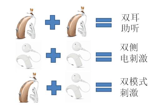 重度到极重度听力损失患者要想实现双耳听觉,可以通过双耳双模装配或双侧人工耳蜗植入实现。对于身体条件不允许再次手术的患者和没有足够资金来植入第二个人工耳蜗的患者来说,如果没有植入人工耳蜗的那一侧有一定的残余听力,选择对侧耳佩戴助听器是比较明智的选择。