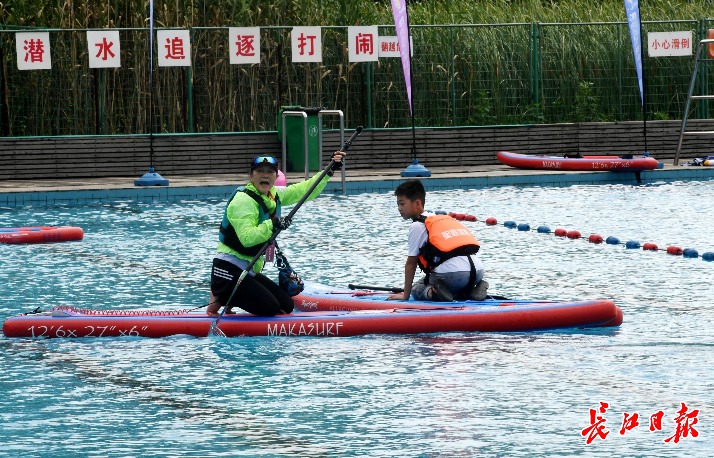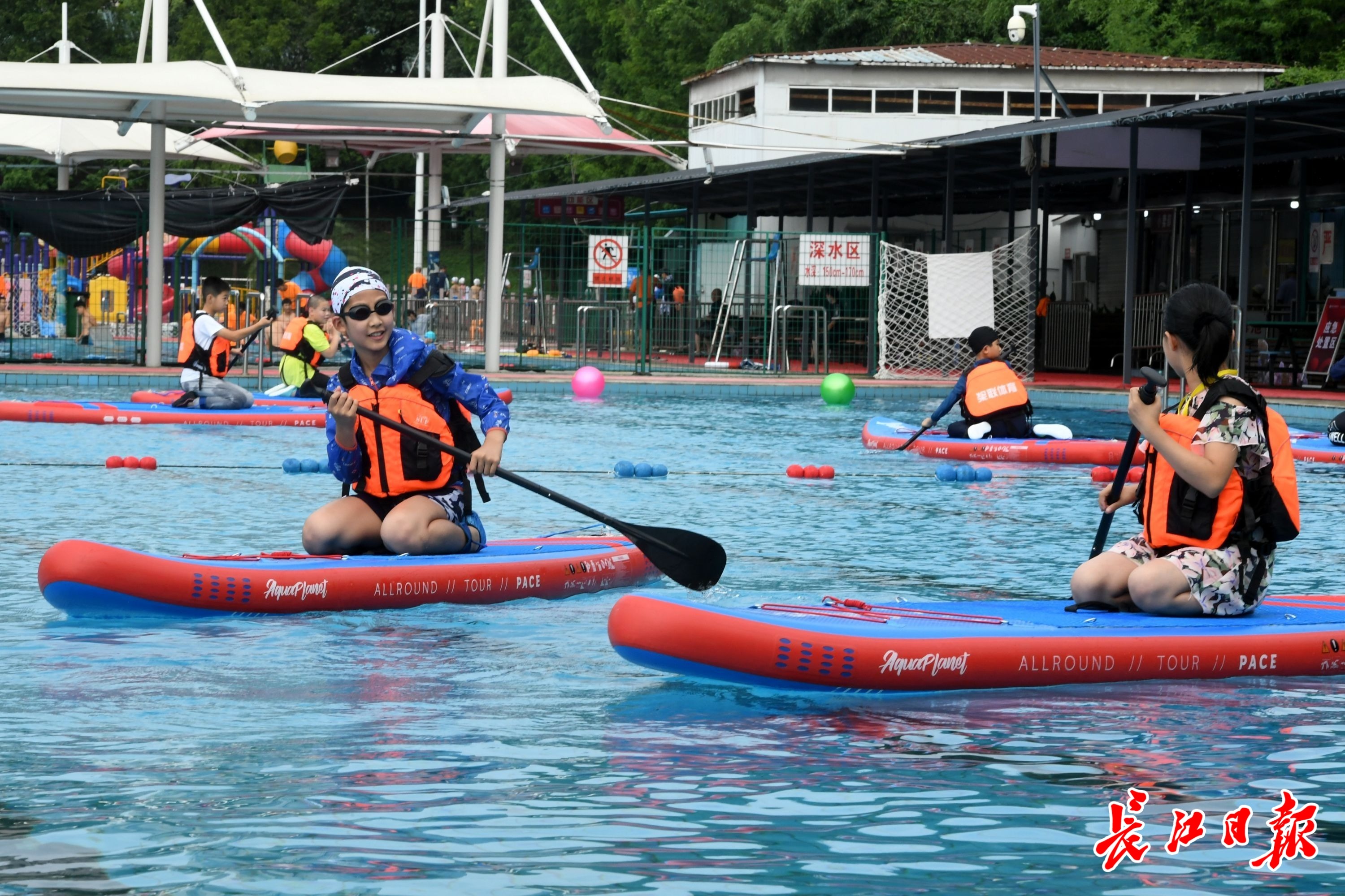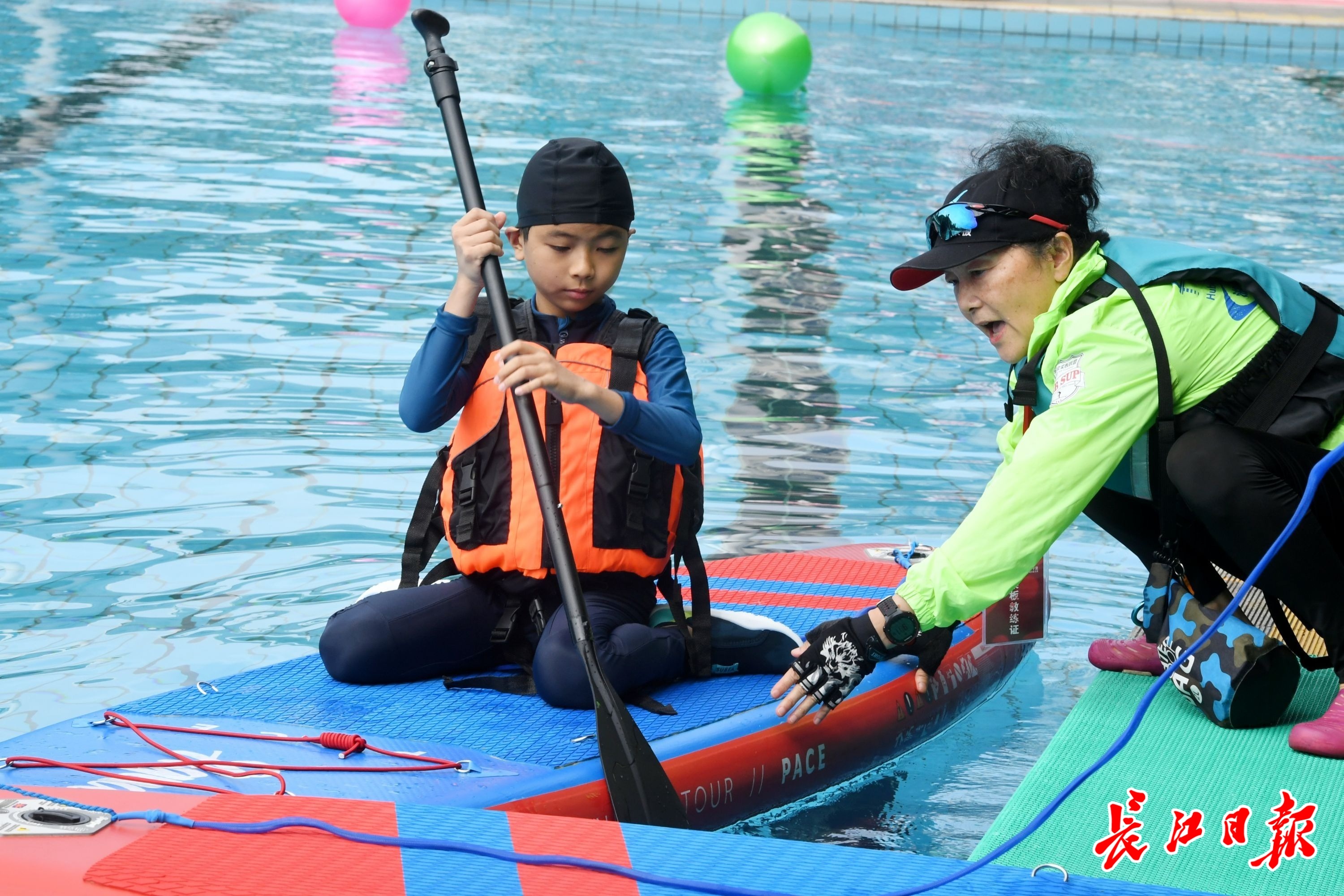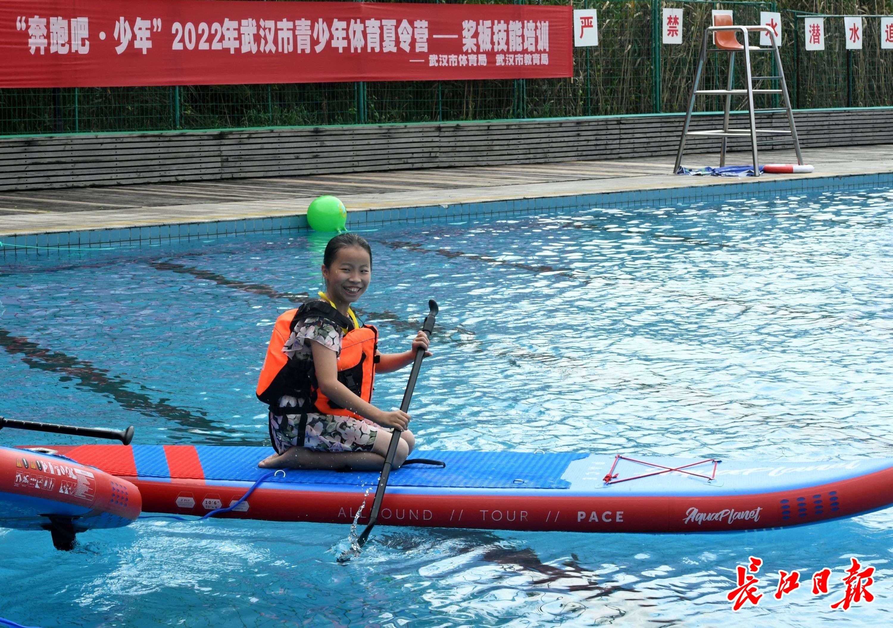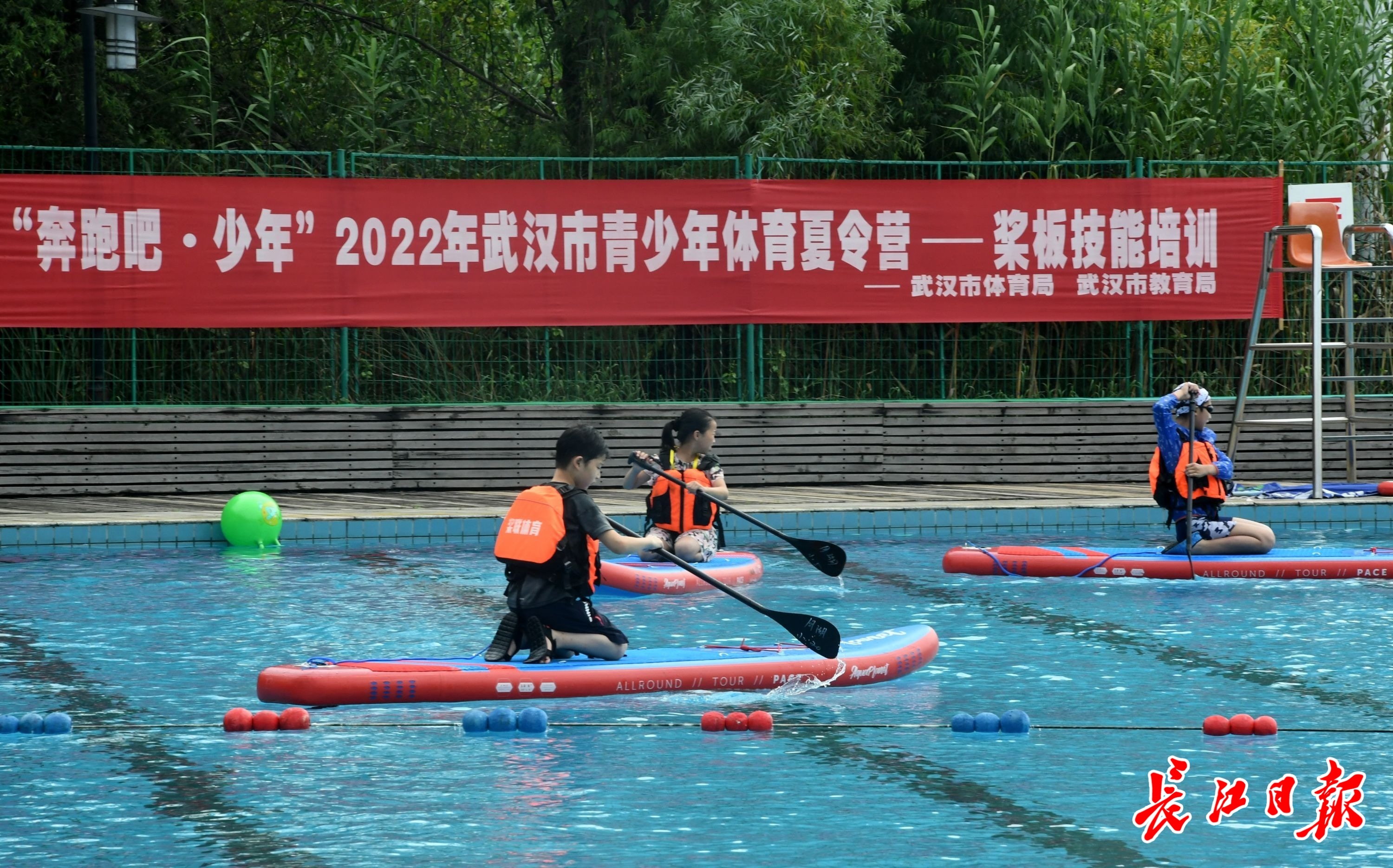 7月6日,孩子们期待已久的“奔跑吧·少年”2022武汉市青少年体育夏令营正式开营。当天,22000多名报名成功的青少年,在分布于全市各城区的240个免费技能培训点打球、游泳、骑马、射箭、滑冰、滑雪,开启快乐的暑期生活。在汉阳月湖游泳池,50名孩子由资深桨板教练专业教学,从理论知识、基础技能、进阶技能、高阶技能、桨板竞速五大版块系统学习,培养孩子的耐力,提高他们战胜挫折的勇气。