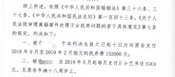 2018年8月27日,判决下来了,根据判决显示,市北区人民法院认为姜先生和林女士作为孩子的父母,应承担相等的责任,按照双方协议,两人都需要每月支付5万元,庭审调解中,姜先生承诺每个月最多可拿出6000元,市北区人民法院考虑实际情况,判决将抚养费从5万元调整到6000元。