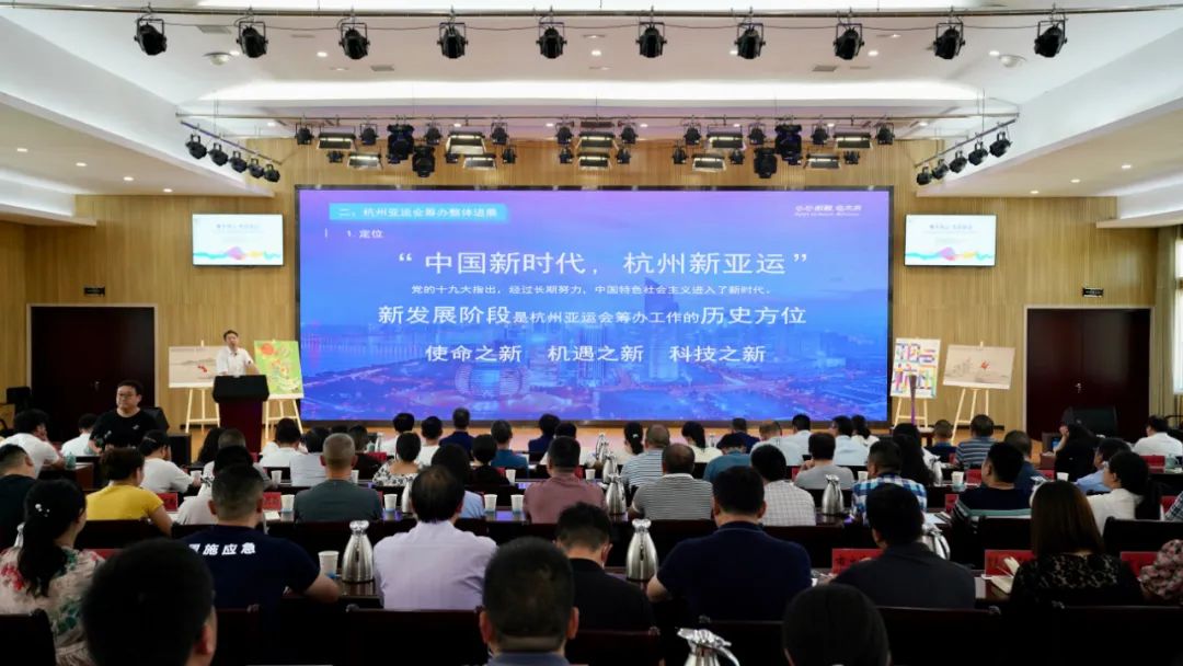 杭州亚组委宣传部部长、杭州市委宣传部副部长许德清作《讲好亚运故事 共享亚运荣光》专题宣讲,回顾了亚运会的发展历史以及杭州申办历程,并对杭州亚运会的筹办工作展开简要介绍,重点阐述了独具魅力和特色的杭州亚运美学文化,丰富的内容、生动的讲述打动人心,引人入胜。