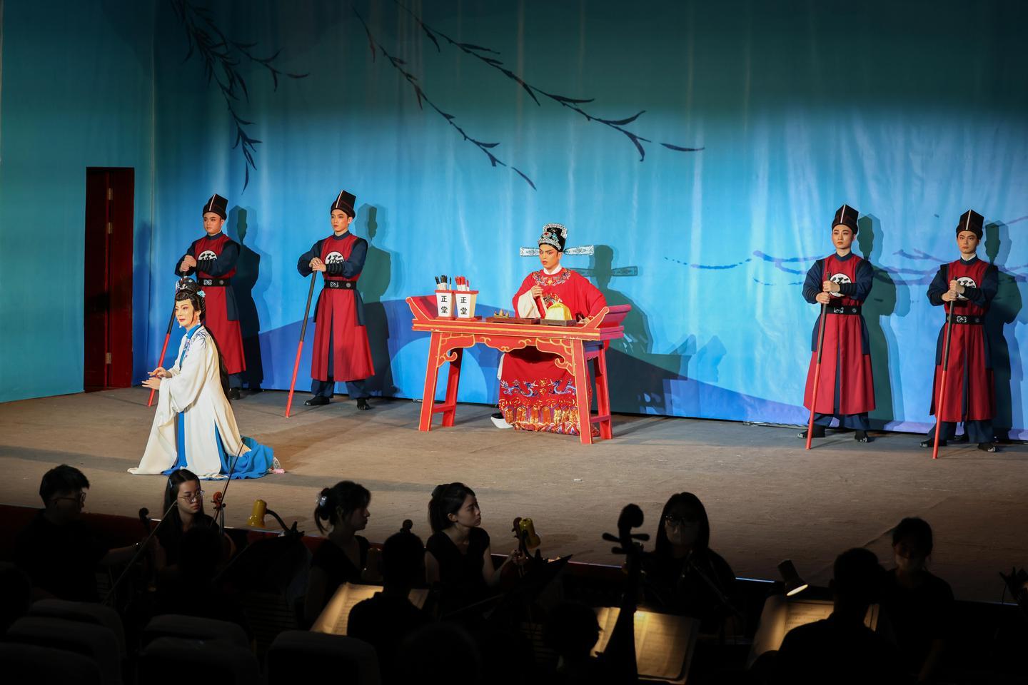 这是下沙街道邀请浙江小百花越剧院为辖区居民带来的精彩演出。除了《红楼梦·焚稿》以外,《梁祝·十八相送》《红灯记》《江姐·五洲人民齐欢笑》《碧玉簪·归宁》《碧玉簪·送凤冠》等多个越剧精彩选段连番上演,辖区文艺爱好者、社区居民、街道文体社团学员们在家门口享受了一道丰盛的文化大餐。