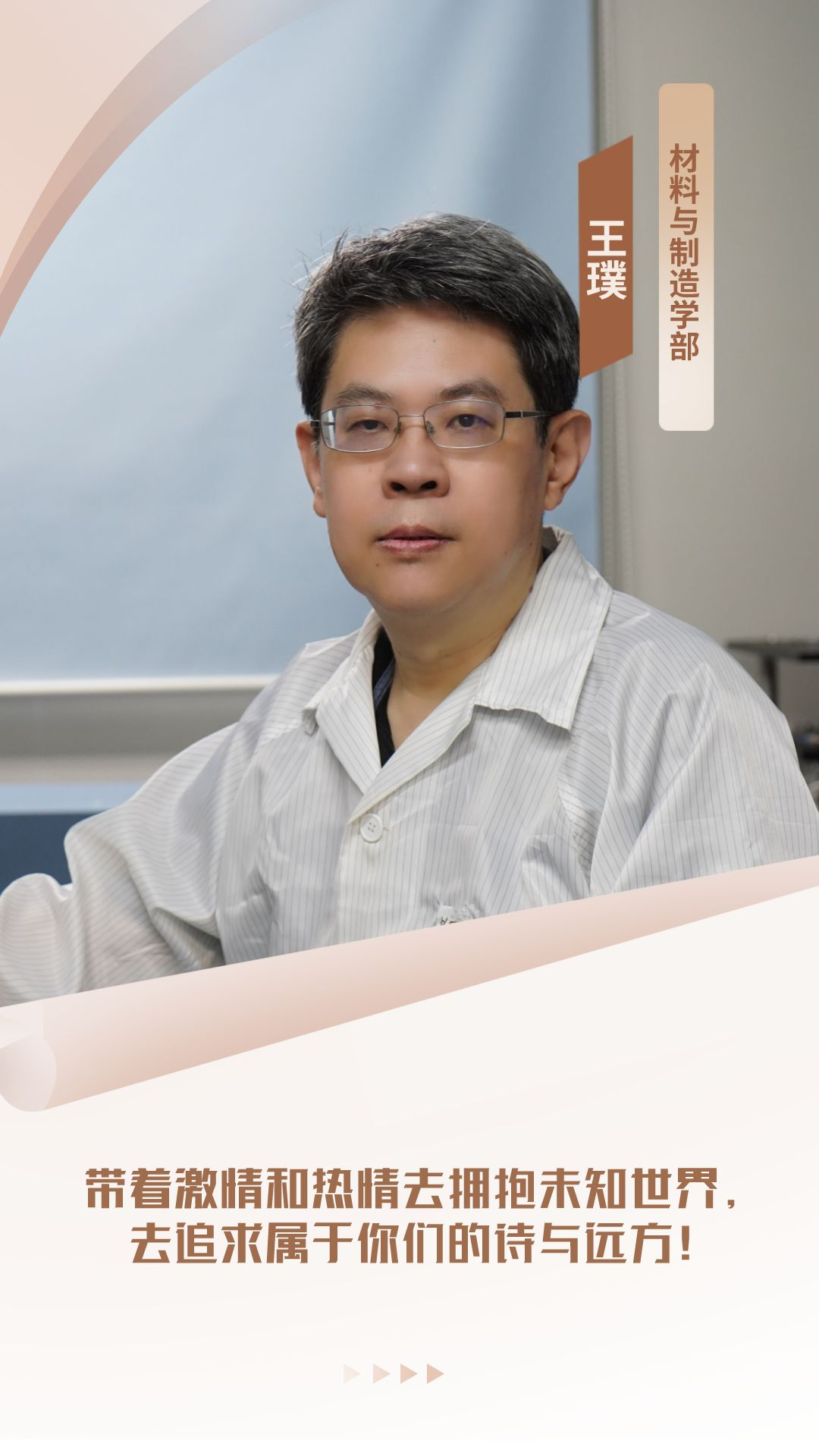 入学时的憧憬,经过脚踏实地的努力,转变成毕业时的喜悦,收获终将不负耕耘。希望你们在未来的道路上自信、从容应对各项人生挑战,担任好人生中的各种角色。事业上,执一念,专一事,前程似锦;生活中,爱自己,爱亲朋,如愿随心。感恩过往,不负将来,脚步坚定,远方清晰。北工大永远是你们的家,欢迎常回家看看。