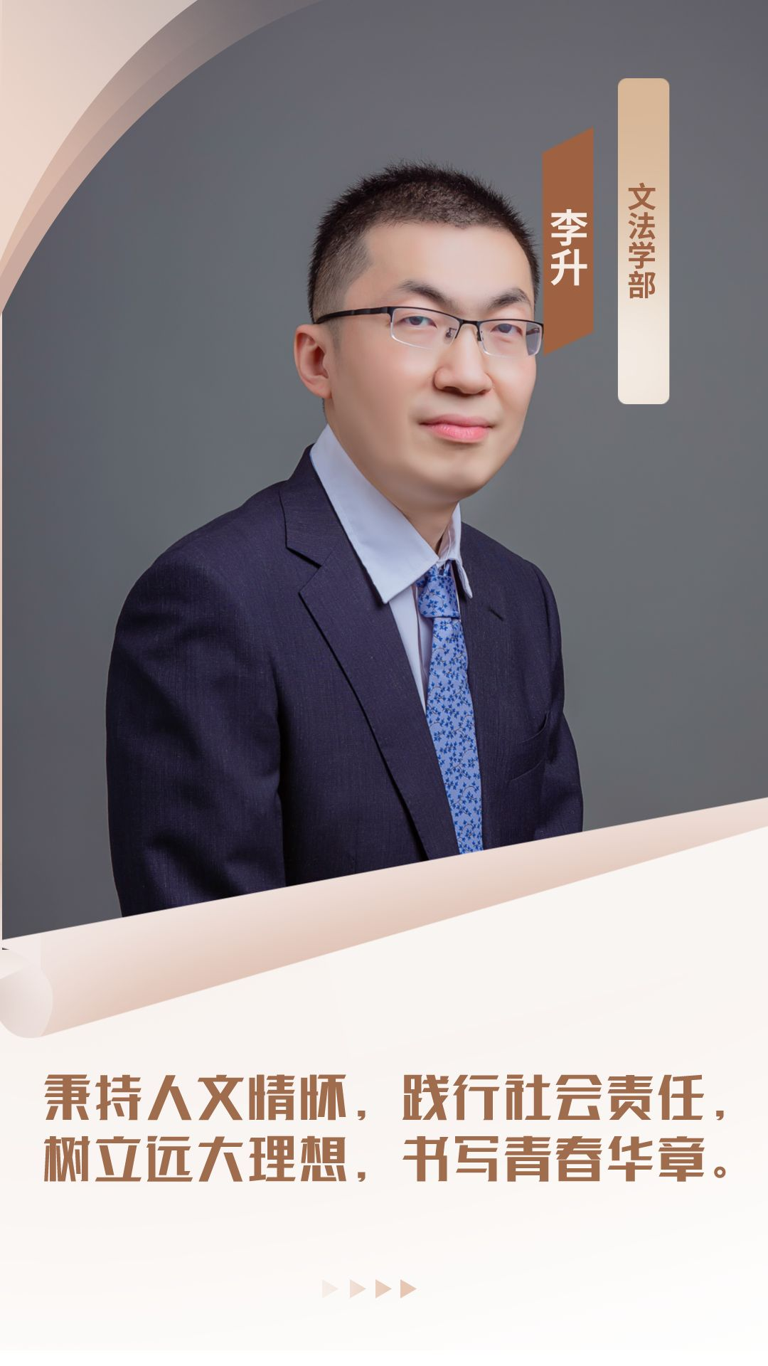 衷心祝福即将走向人生新起点的每一位同学,希望大家能够秉持人文情怀,践行社会责任,树立远大理想,书写青春华章。逝去的时光不必纠结,未来的期待无需焦虑,做好每时每刻的当下,以不息为体,以日新为道,相信定能迎来绚烂多彩的明天!