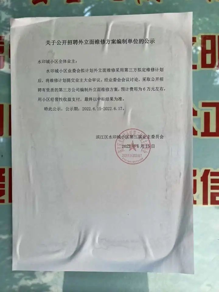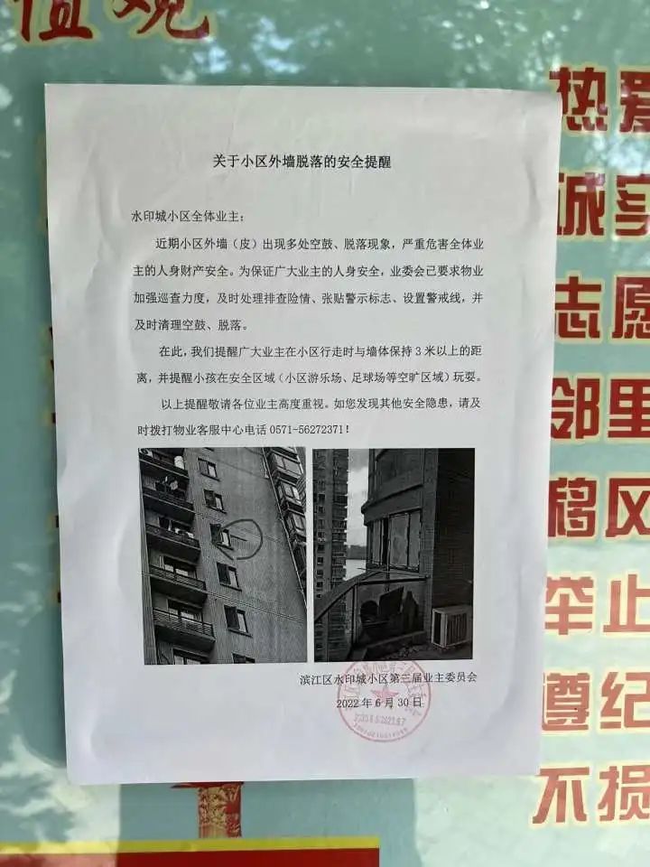 不过当时正好有一家来自临平的外墙维修相关公司在和业委会工作人员接洽相关事宜。