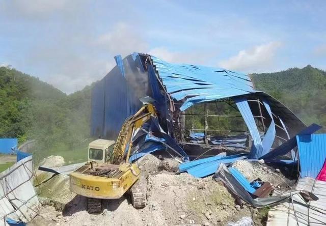 六都镇综合执法队伍依法强制拆除六都镇贝融建材有限责任公司一处占地1533平方米违建厂棚