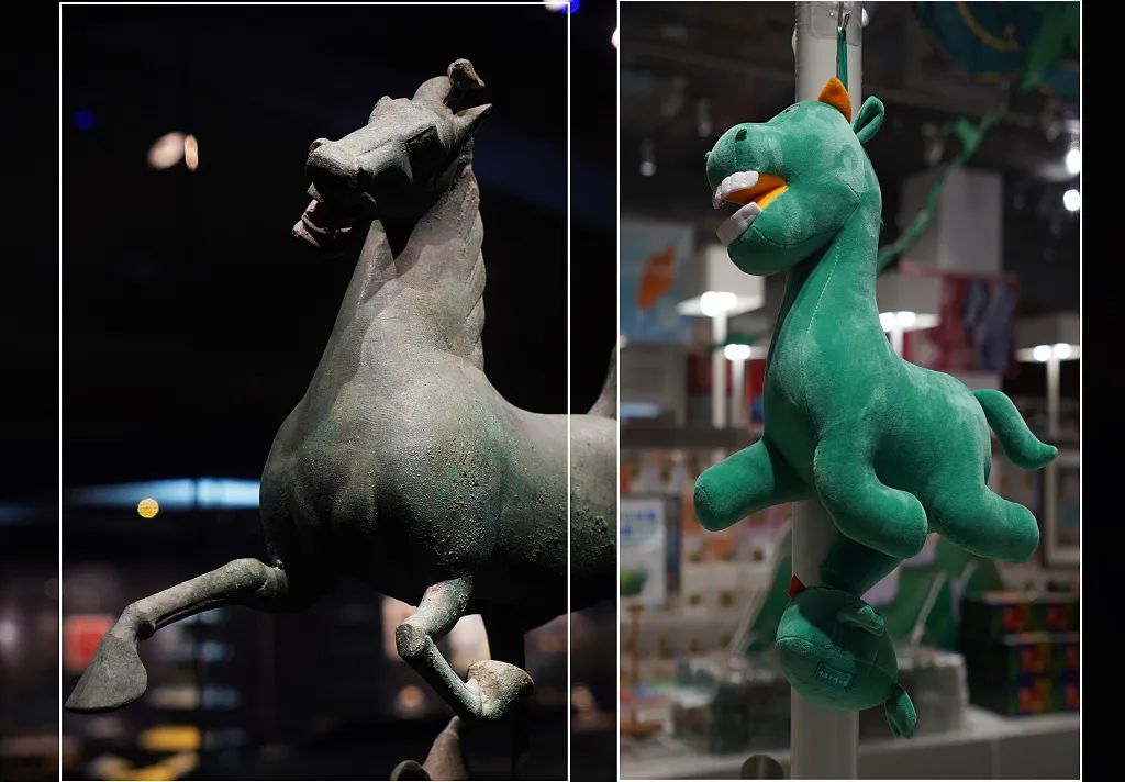 △ 铜奔马毛绒玩具与馆藏铜奔马对比
