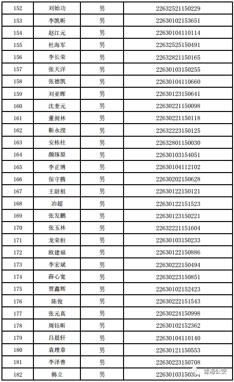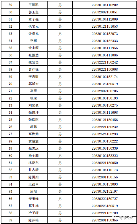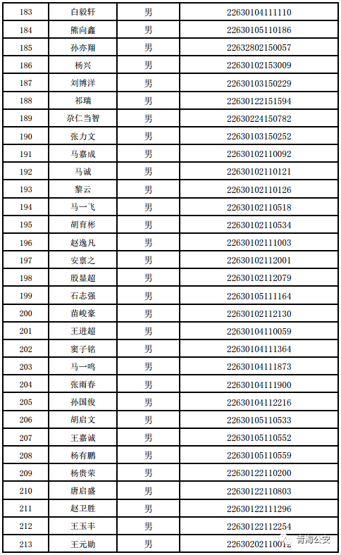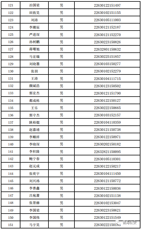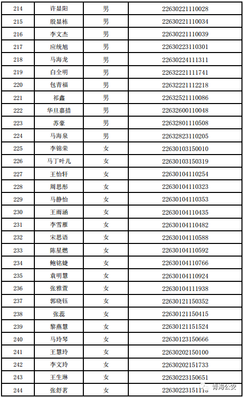 附件:《2022年公安部直属公安院校在青生源选拔合格人员名单》