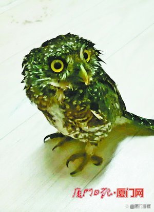 前日,市自然资源和规划局动物救助站又来“新客人”了。这次是一只猫头鹰,它的羽毛被打湿,睁着眼睛四处张望。这只猫头鹰学名斑头鸺鹠(xiū liú),属于国家二级保护动物。5日下午,它躲进居民家中的车库,一度被误认是模型。