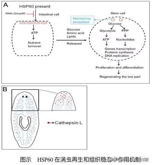 近期,漯河医专马克学博士团队在国家自然科学基金项目和学校博士启动项目等基金的支持下,以再生能力极强的涡虫为对象,全面阐述了干扰HSP60的表达对涡虫再生和组织稳态的影响,发现干扰HSP60影响线粒体功能,进而激活Cathepsin L介导的细胞死亡机制。该研究成果对开展以HSP60为靶点的抗肿瘤治疗和开发dsRNA抗肿瘤药物具有重要的理论意义和学术价值。