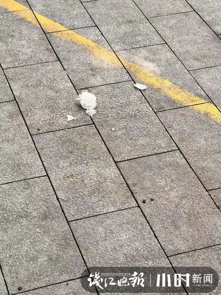 “我就住这个单元,当时下班了,我从小区东门进来,14点58分左右开始打电话,到了6幢1单元楼下,因为怕上了电梯信号不好,就在楼下停了一会儿,结果一个玻璃瓶掉下来,就在我身边炸开,差一点点就砸在我头上,太危险了。”