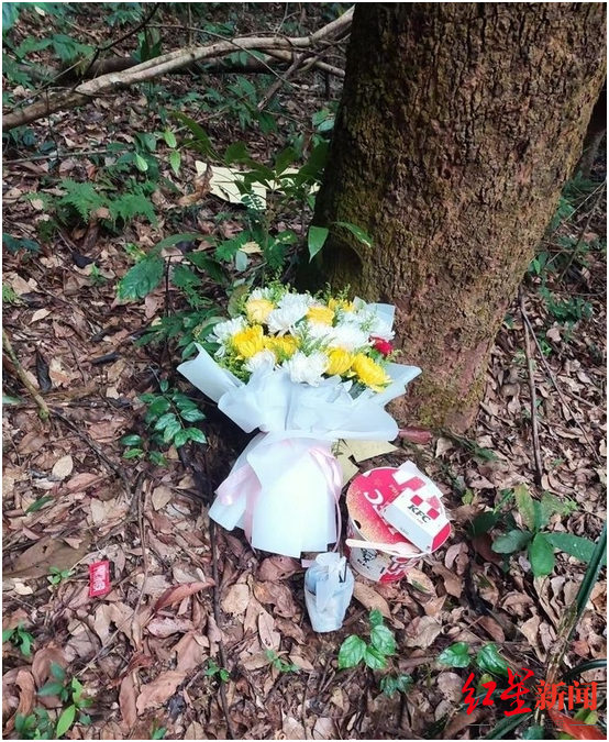 李胜及家人在女儿遇害地摆上鲜花。图片来自李胜微博