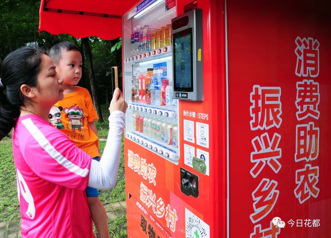 很便民,像我们带小孩子出来玩,他玩的时间较长,口渴或者需要水,我们也不用到处找,在这里直接可以购买,也是在用另外一种方式去助农,去帮助振兴乡村。都很多,有奶,又有清凉饮料,品种选择都很多很丰富,大人小孩都适合。