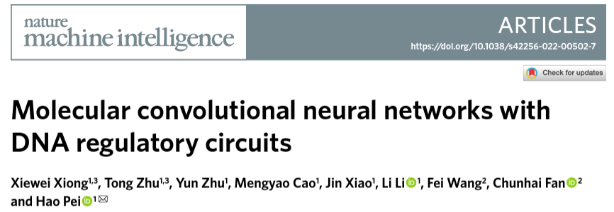 她就是华东师范大学化学与分子工程学院博士生熊谢微。7月4日,熊谢微为第一作者的研究在Nature子刊《自然—机器智能》(Nature Machine Intelligence)在线发表。这是我国科研人员首次在试管中用DNA构造出了卷积人工神经网络,也是迄今为止规模最大、功能最复杂的人工化学分子智能反应网络。