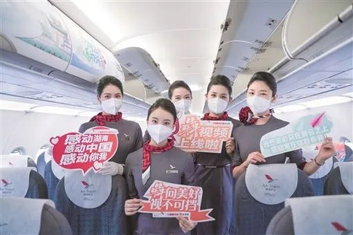 “万米高空,感动留言”。在长沙飞往成都的“感动号”专机上,湖南日报社犇视频联动百余名旅客,在万米高空为“感动中国人物”、郴州女孩江梦南留言,致力传播正能量;