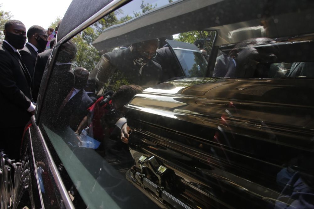 2020年6月9日,在美国得克萨斯州休斯敦,弗洛伊德的灵柩被放上灵车准备从教堂运往墓地。新华社发(劳承跃摄)