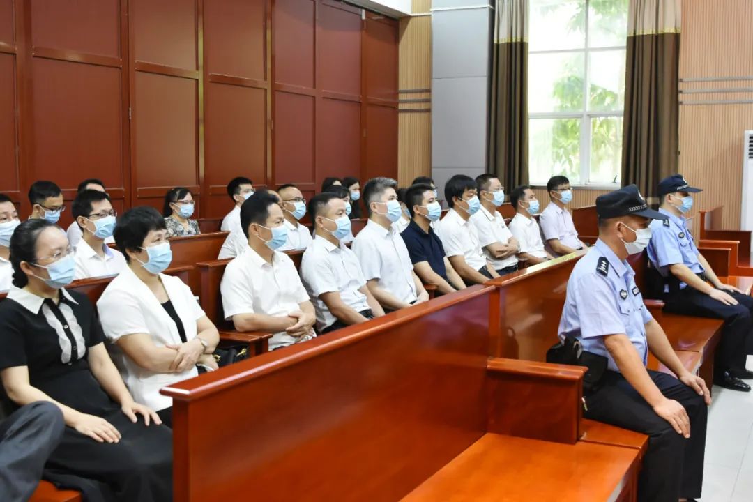 由文昌市委常委、市纪委书记、市监委主任林琳带队,王康强、柯鹏、梁剑肖、王廷太、陆胜、郑善、王爱妹、林叶等市领导出席,市政府办公室、市自然资源和规划局、市财政局、市应急管理局、市交通运输局、市教育局、市统计局、市机关事务服务中心、市国库支付局、海南文昌发展控股集团有限公司等郑有雷曾任职或分管单位“一把手”全程参加旁听庭审。