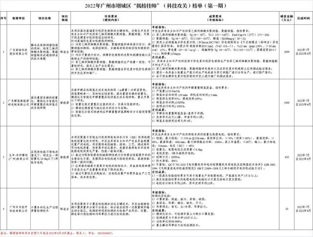 据了解,“揭榜挂帅”也被称为“科技悬赏制”,瞄准亟须攻关的产业关键核心技术,通过面向全社会公开征集、高手“接单”、成果兑现这一链条,让资源精准注入具备攻关实力的“尖刀”,助推核心技术攻关跑出加速度。经过前期筛选和审查,增城区遴选形成今年第一批榜单,涉及新能源、先进制造等领域4个项目,其中单个项目研发经费预算最高达2000万元。