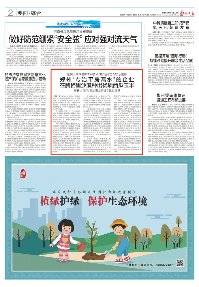 运用土壤成岩等专利技术“锁”住水分“点”沙成绿